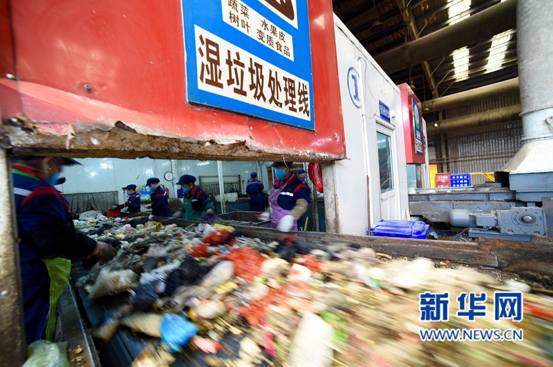 3月29日,廈門市垃圾分類處理廠內(nèi)運(yùn)行中的垃圾分揀流水線。 新華社記者姜克紅攝 -