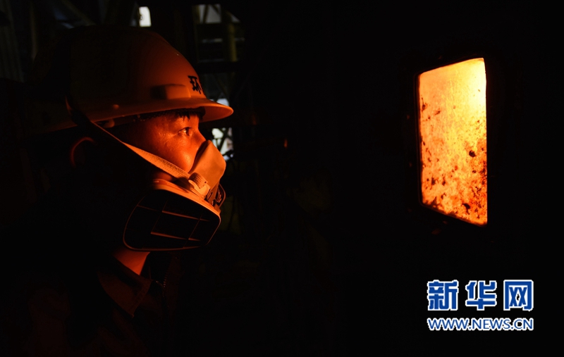 3月29日,廈門市后坑垃圾焚燒發(fā)電廠值班長張祥潤在觀察垃圾焚燒爐內(nèi)情況。 新華社記者姜克紅攝 -