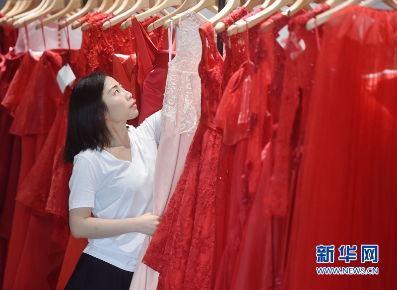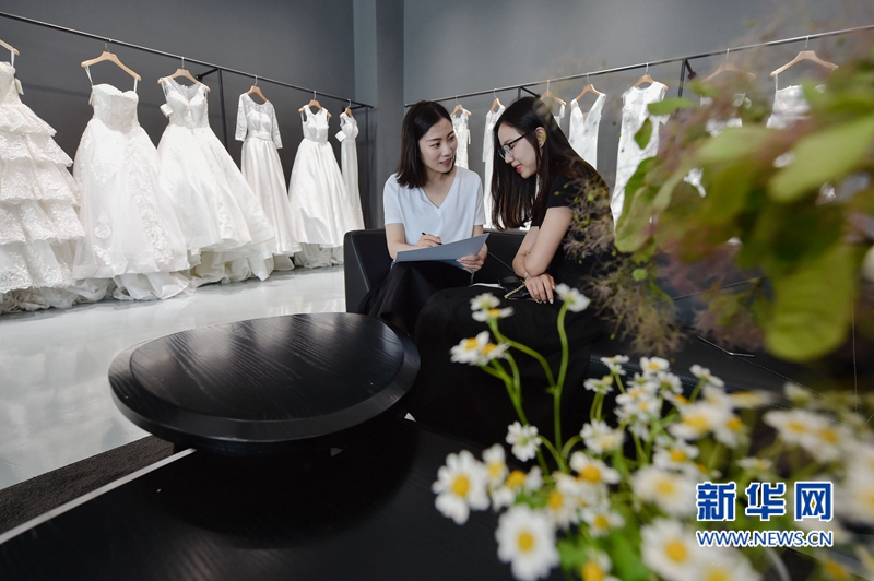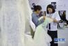4月26日,蔡萍萍在工作室修改一件定制婚紗樣品。新華社記者 宋為偉攝 -