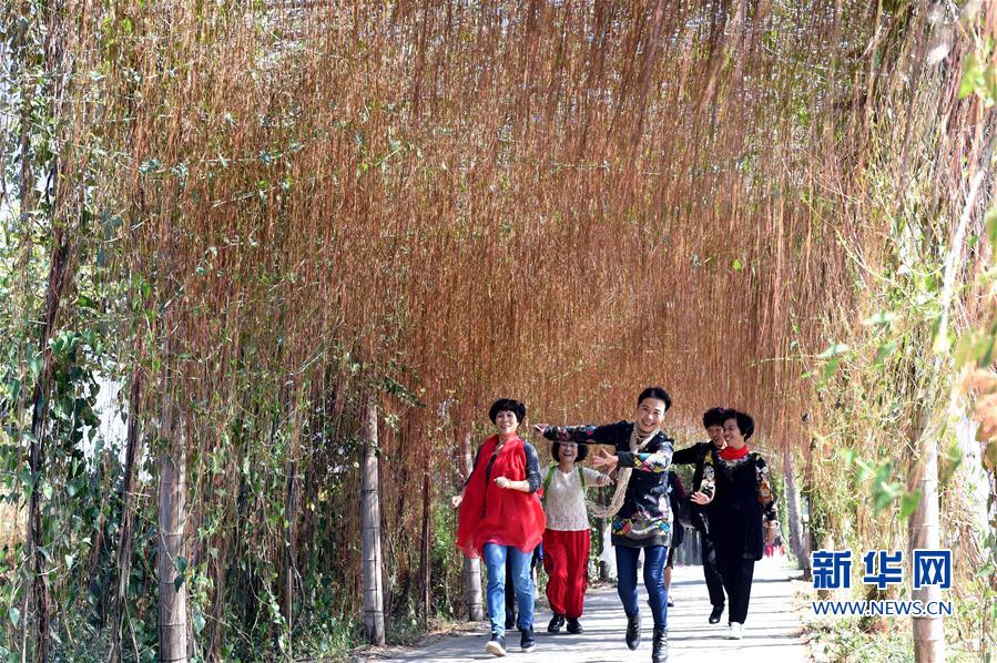 11月2日,游客在順昌縣埔上鎮(zhèn)張墩村龍須藤走廊游覽。 福建省順昌縣依托美麗鄉(xiāng)村建設(shè),以農(nóng)民合作社為主要載體,利用當(dāng)?shù)刈匀簧鷳B(tài)資源,打造集循環(huán)農(nóng)業(yè)、創(chuàng)意農(nóng)業(yè)、農(nóng)事體驗(yàn)為一體的生態(tài)田園綜合體,通過農(nóng)業(yè)綜合開發(fā)、建設(shè)特色旅游山村助力當(dāng)?shù)剜l(xiāng)村振興。新華社記者 彭張青 攝 -