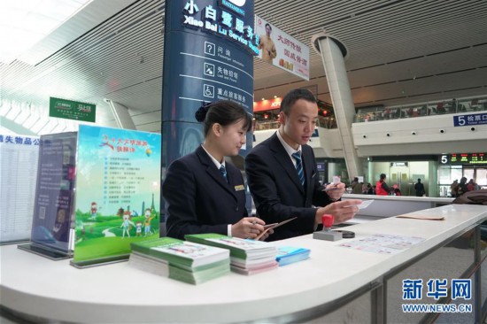 2月12日,廈門火車站小白鷺服務(wù)臺(tái)工作人員許丹(左)和吳寶欣在核對(duì)填寫的信封信息,準(zhǔn)備寄送證件。 廈門火車站小白鷺服務(wù)臺(tái)創(chuàng)建于2004年,主要提供旅客咨詢、重點(diǎn)旅客幫扶、遺失物品查找、廣播尋人等服務(wù)。自實(shí)行火車票實(shí)名制以來(lái),小白鷺服務(wù)臺(tái)已為乘客寄送各種遺失證件3000余張。 新華社記者 林善傳 攝
