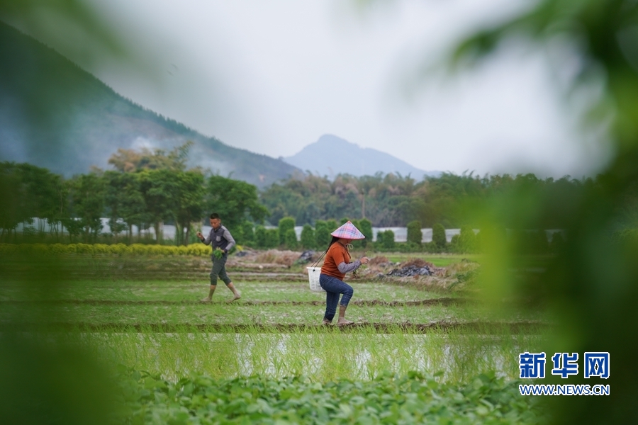 農戶在田里勞作(無人機拍攝)。新華網 肖和勇 攝