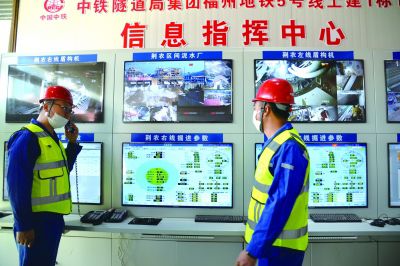 ▲ 起自閩侯荊溪鎮(zhèn)的福州地鐵5號(hào)線正在加快施工。圖為工作人員通過(guò)指揮中心進(jìn)行施工調(diào)度。林鑫 攝