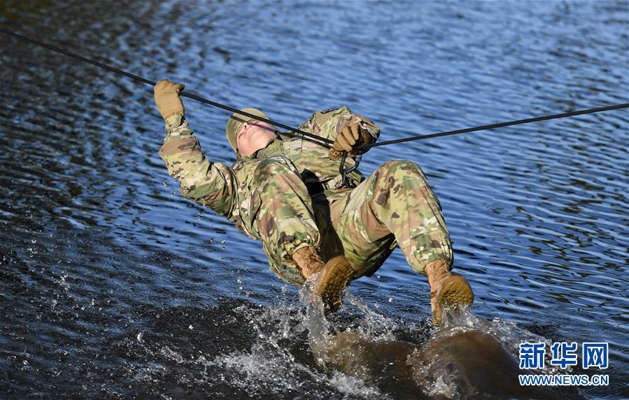11月18日,在美國俄勒岡州錫賽德的國民警衛(wèi)隊拉里葉軍營,一名美軍士兵參加單繩橋救援演練。中美兩軍人道主義救援減災(zāi)聯(lián)合實兵演練當日進入第三天。此次聯(lián)合演練中美兩軍共派出200余人參加。新華社記者殷博古攝 -