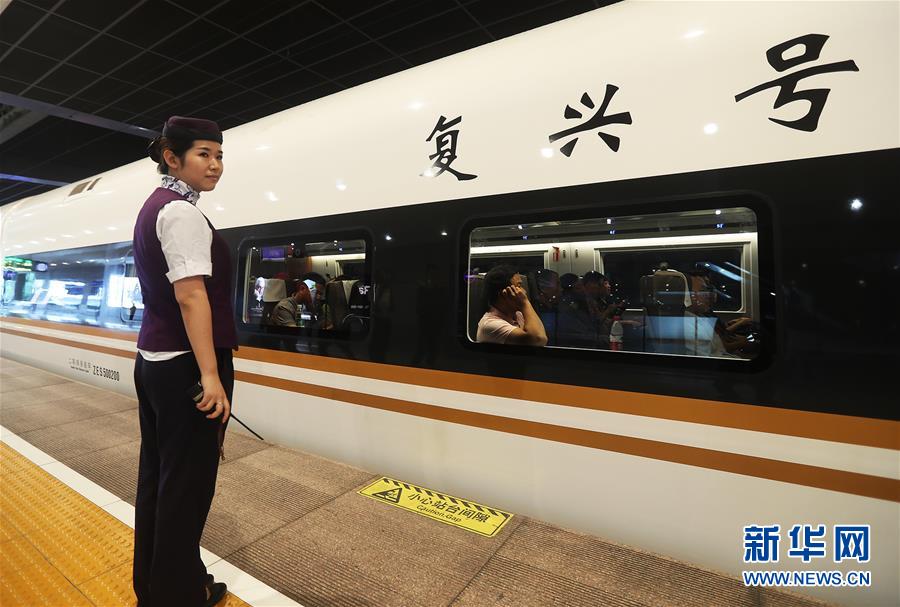 “復(fù)興號(hào)”以350公里時(shí)速的正式運(yùn)營(yíng),標(biāo)志著我國(guó)成為世界高鐵商業(yè)運(yùn)營(yíng)速度最高的國(guó)家。今年開(kāi)跑的“復(fù)興號(hào)”在京滬高鐵實(shí)現(xiàn)350公里時(shí)速運(yùn)營(yíng),再次創(chuàng)造了領(lǐng)先世界的中國(guó)速度。目前,中國(guó)鐵路在勘察設(shè)計(jì)、工程建造、高速動(dòng)車組、列車控制、牽引供電、運(yùn)營(yíng)管理、安全保障等領(lǐng)域已經(jīng)取得一系列自主創(chuàng)新成果,中國(guó)鐵路總體技術(shù)水平已邁入世界先進(jìn)行列,部分技術(shù)處于世界領(lǐng)先水平。作為中國(guó)“新四大發(fā)明”之一,高鐵不僅安全、便利、快捷地服務(wù)著中國(guó)旅客,同時(shí)也驚艷著世界。 G1次“復(fù)興號(hào)”列車駛出北京南站(9月21日攝)。新華社記者 羅曉光 攝 -