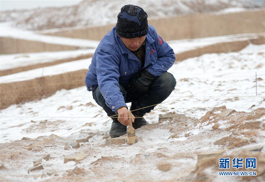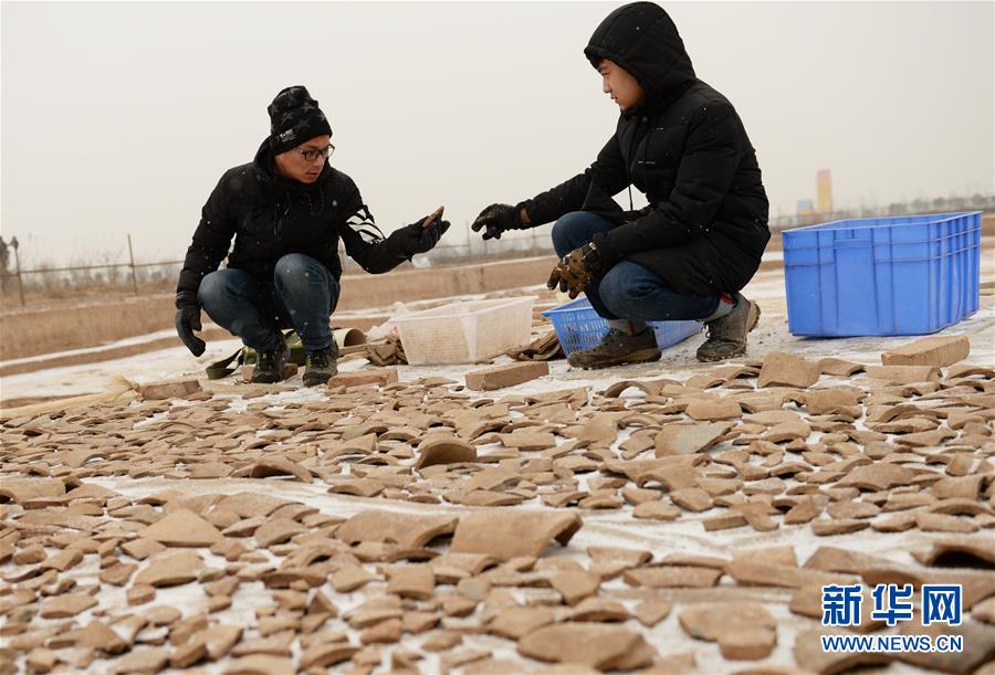 考古人員在秦咸陽城胡家溝建筑遺址考古工地上清理殘瓦(1月24日攝)。近日,考古工作者首次在秦咸陽城遺址區(qū)域內(nèi)發(fā)現(xiàn)秦代大型國家府庫遺存。這是繼20世紀(jì)70至80年代發(fā)掘秦咸陽宮遺址以來,在秦咸陽大遺址保護(hù)區(qū)內(nèi)再次發(fā)現(xiàn)秦代大型官署建筑遺址。此次發(fā)現(xiàn)的遺址位于陜西省西咸新區(qū)秦漢新城窯店鎮(zhèn),地處秦都咸陽城宮區(qū)以西的胡家溝塬地。遺址建筑四面為夯土垣墻,墻體厚度約3米,寬19.5米,總長110米。發(fā)掘過程中出土了數(shù)量眾多的石質(zhì)編磬殘塊,目前已在23件殘塊上發(fā)現(xiàn)了小篆“北宮樂府”等字樣,再次證實(shí)了秦代設(shè)樂府的史實(shí)。新華社記者 李一博 攝 -