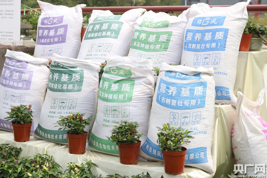 觀摩現(xiàn)場(chǎng)展出的有機(jī)肥。(央廣網(wǎng)記者 夏燕 攝)