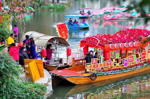 男女踏青放河燈;顒悠陂g,男女朋友共游荔枝灣,白天坐花船巡游欣賞荔枝灣美景,進(jìn)行才藝展示,晚上在荔園一起放河燈送祝福。