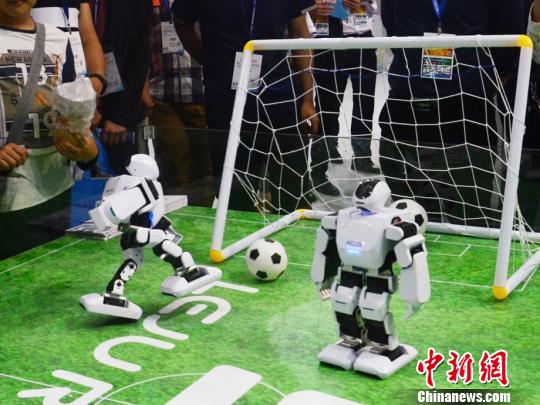 廠(chǎng)家展出足球機(jī)器人 徐曉美 攝