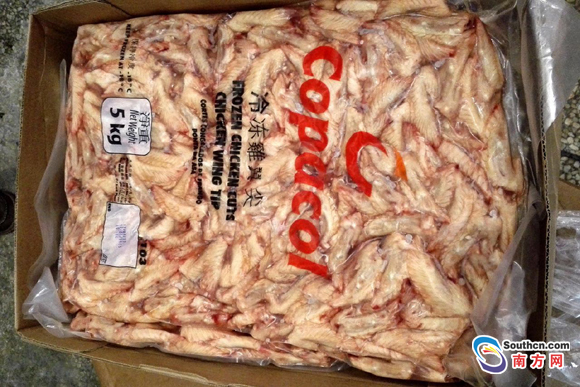 經(jīng)過清點,船上共有凍柜24個,分別裝有凍鳳爪、豬排、豬蹄、豬軟骨、雞翅尖、雞腳等凍品630噸,市值約3700萬元,這是深圳邊防部門近年來首次查獲利用套牌大噸位貨輪走私凍品的案件。