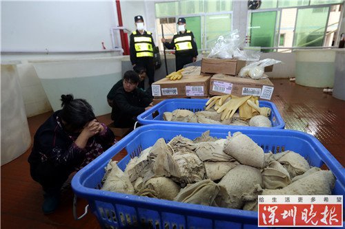 經過警方 3 個多月的偵查,一條有毒食品從采購、加工到銷售的鏈條逐漸清晰,并牽涉到平湖、布吉、布心、東門等多個市場,而這些有毒有害食品的源頭,則是位于龍崗平湖順平市場的一個生產窩點。3 月 17 日,深圳羅湖公安分局出動警力 260 名,在市局治安巡警支隊的指導下,與深圳市市場稽查局食品稽查處聯(lián)合執(zhí)法,一舉搗毀了這個隱匿的地下加工廠。