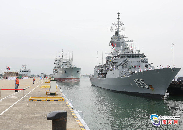 南方網(wǎng)消息:13日上午9時(shí)許,澳大利亞皇家海軍“巴拉臘特”號護(hù)衛(wèi)艦抵達(dá)湛江某軍港,開始對海軍南海艦隊(duì)為期5天的友好訪問。南海艦隊(duì)在軍港碼頭為澳大利亞海軍艦艇的到訪舉行了簡短的歡迎儀式。