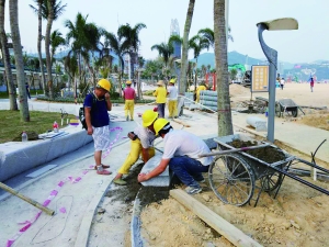昨日,記者來到鹽田區(qū)大梅沙海濱公園,公園處處都是施工景象,工人們在鋪設(shè)路面、安裝新的出入閘口,新的廁所、沖沙池等便民設(shè)施也在加緊施工當中。
