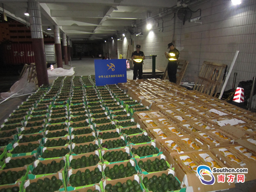 南方網(wǎng)訊 4月20日凌晨,800多個(gè)裝滿走私水果的箱子身穿“夜行衣”深夜乘貨柜車悄然入境。然而,這輛“空車”被皇崗海關(guān)關(guān)員果斷識(shí)破。據(jù)悉,皇崗海關(guān)在這起案件中,共查獲釋迦果300箱共0.75噸,牛油果537箱共2噸。
