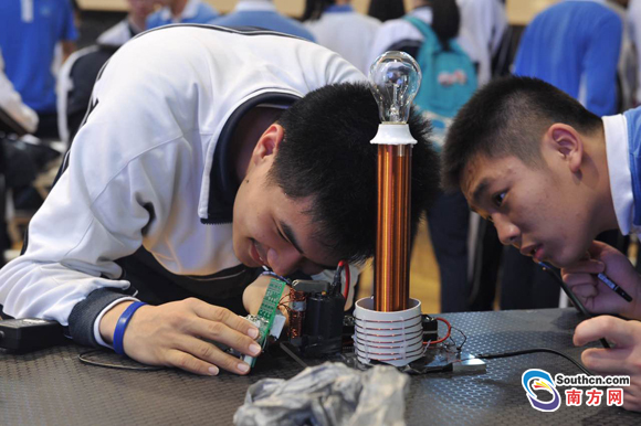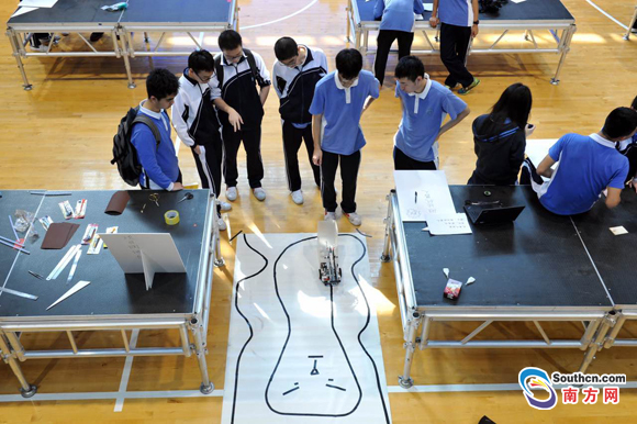 南方網(wǎng)訊 在自習(xí)課上如果說話聲太大,一款高分貝提醒器將作出“警示”;教室內(nèi)的溫度如果過高或過低,智能化空調(diào)將匹配調(diào)節(jié)……這些“神器”都出自深圳實驗學(xué)校高中部學(xué)生之手,這里的高中生們善于對生活進行觀察和思考,喜歡做小發(fā)明、小創(chuàng)造,并用動手實踐將創(chuàng)意轉(zhuǎn)化為實物。而這與學(xué)校重視科技創(chuàng)新以及開發(fā)多層次、系統(tǒng)的科技創(chuàng)新課程、活動密切相關(guān)。深圳實驗學(xué)校高中部科技節(jié)日前落下帷幕,該校也首次對外系統(tǒng)介紹其科技創(chuàng)新實踐教育情況。