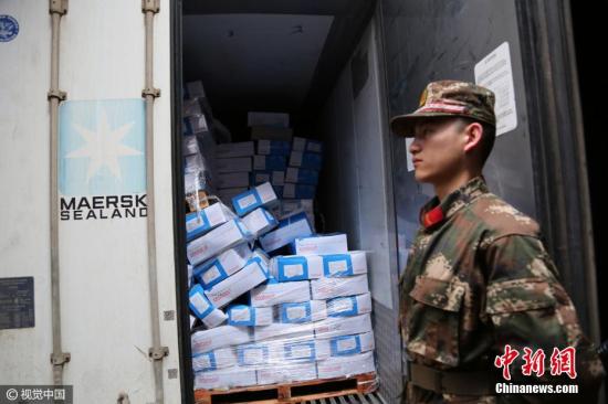 資料圖片,廣東海警查獲600噸特大走私凍品案。 廖鍵 攝 圖片來源:視覺中國