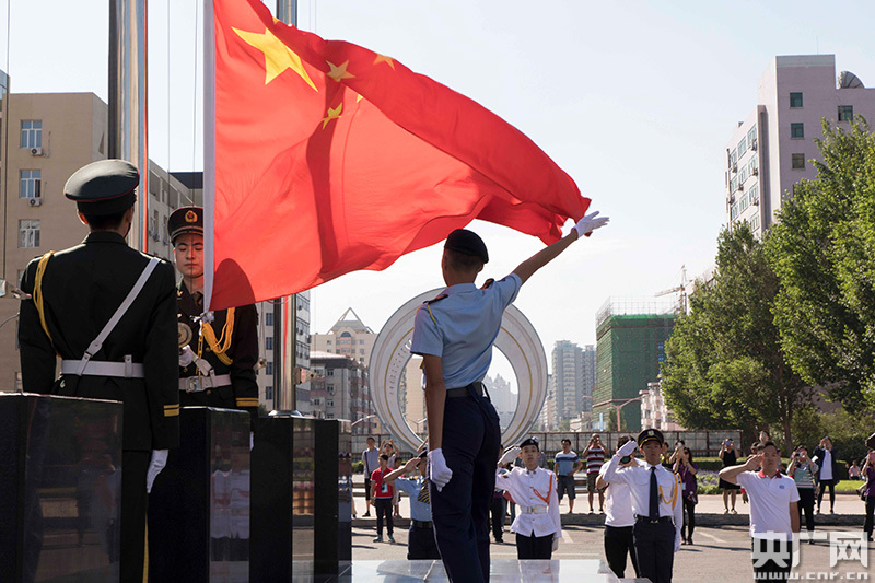 港青擔(dān)任旗手和護(hù)旗手,在哈工大舉行升旗儀式