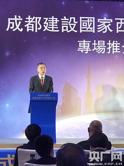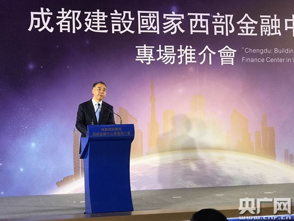 四川省委常委、成都市委書記范銳平向香港政商及金融界人士介紹成都建設(shè)國(guó)家西部金融中心有關(guān)情況。