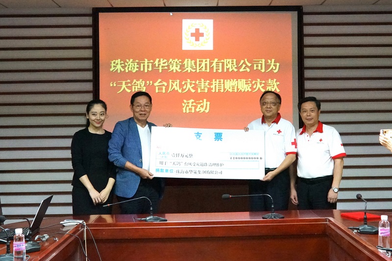 24日下午,珠海市政府副市長、市紅十字會長閻武代表珠海市紅十字會接受了珠海華策集團有限公司1000萬元人民幣捐款,該款將專用于珠海的交通道路設(shè)施恢復。華策集團主席楊峰表示,這次“天鴿”來襲,街頭綠化樹被臺風連根拔起,成了交通障礙物,給民眾出行帶來阻礙,險情揪人心,要將危機當做一次演練,加強防范危機設(shè)備的投入,做個有社會公德心的開發(fā)商,希望一份微弱之舉能盡快恢復交通道路設(shè)施,幫助市民早日方便出行。