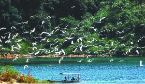 大洋網(wǎng)訊 國慶中秋過后,流溪河國家森林公園迎來了今年最大群的“游客”,逾千只白鷺,在碧綠的湖面上呈現(xiàn)“一行白鷺上青天”的美景。公園管理方告訴廣州日報(bào)記者,近期冷空氣南下,北方普遍降溫,促使第一批候鳥來廣州“嘆”世界。