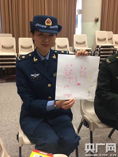 部隊女戰(zhàn)士展示學(xué)生們送給她的禮物