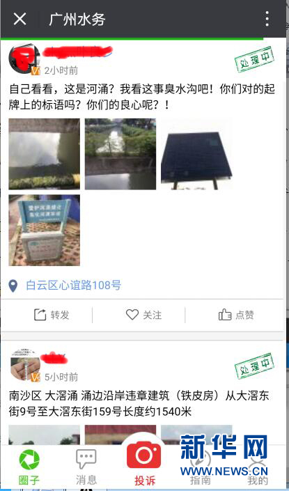 圖為“廣州水務(wù)”微信公眾號水污染投訴平臺(tái)截屏。新華網(wǎng) 記者盧鑒 攝