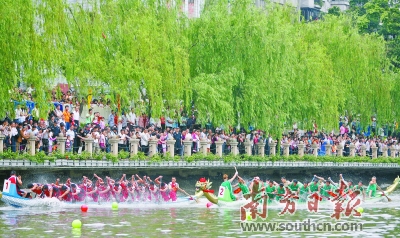 佛山推進(jìn)河涌整治,治理后的汾江舉行龍舟競逐。