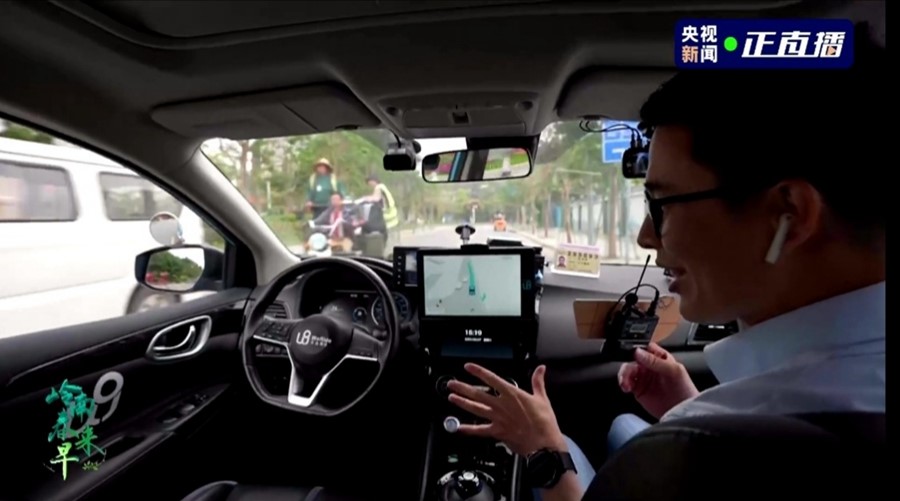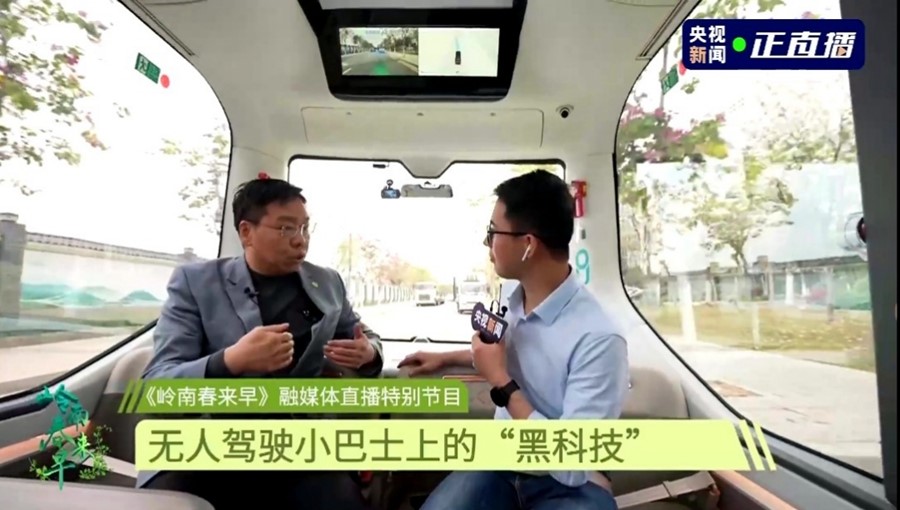 直播中,總臺記者走進同時落地?zé)o人駕駛汽車和無人駕駛巴士的廣州生物島,使用手機軟件叫車,一路分享新鮮體驗感受,并與自動駕駛領(lǐng)軍企業(yè)文遠知行首席運營官張力暢談無人駕駛技術(shù)里的“黑科技”。
