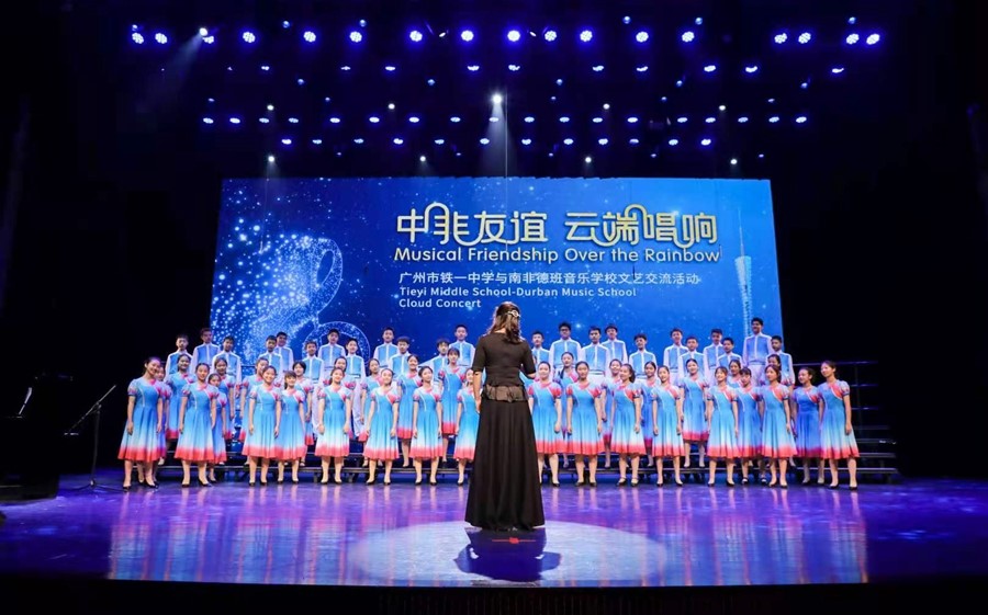 3月27日,“中非友誼·云端唱響” 廣州市鐵一中學(xué)與南非德班音樂學(xué)校文藝交流線上活動在廣州廣鐵文化宮舉行。