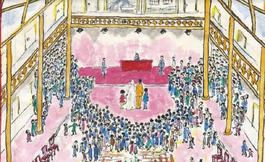 但其實(shí)最初,高春霞并不了解兩位老人的愛(ài)情故事。直到老人的五位子女找到她,帶著《平如美棠》那本書,她無(wú)意中翻時(shí)才知道這是非常平凡而相親相愛(ài)的一家。根據(jù)書中饒平如畫的一張夫婦倆當(dāng)年在大禮堂結(jié)婚的圖片,高春霞萌生了“用還原兩位逝者婚禮的形式”來(lái)舉行合靈儀式的想法。