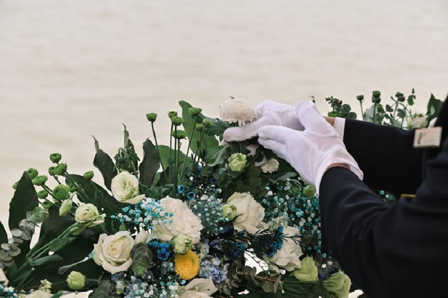 海葬多為群體性的,顧雪瑤每個(gè)月會(huì)跟一次船出海,駛行到指定區(qū)域,再由工作人員撒骨灰,實(shí)行群體性海葬。船只通常只能在海域停留半小時(shí),不過(guò)對(duì)于一些想與逝者做更久一點(diǎn)告別的客戶來(lái)說(shuō),他們則多會(huì)希望選擇個(gè)性化葬禮。
