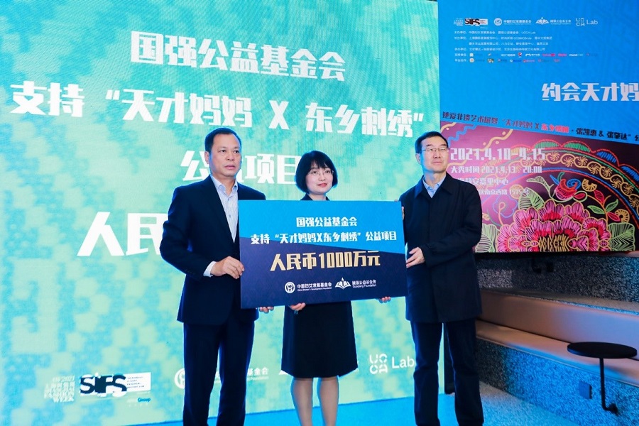 活動現(xiàn)場,碧桂園通過國強公益基金向中國婦女發(fā)展基金會捐贈1000萬元,用于支持甘肅省臨夏回族自治州東鄉(xiāng)族自治縣東鄉(xiāng)刺繡項目。