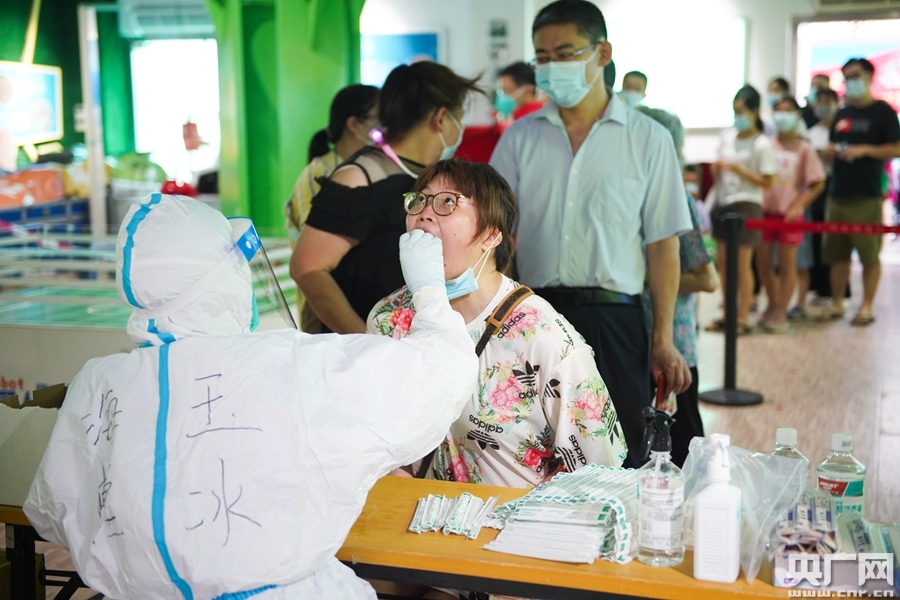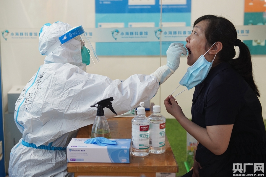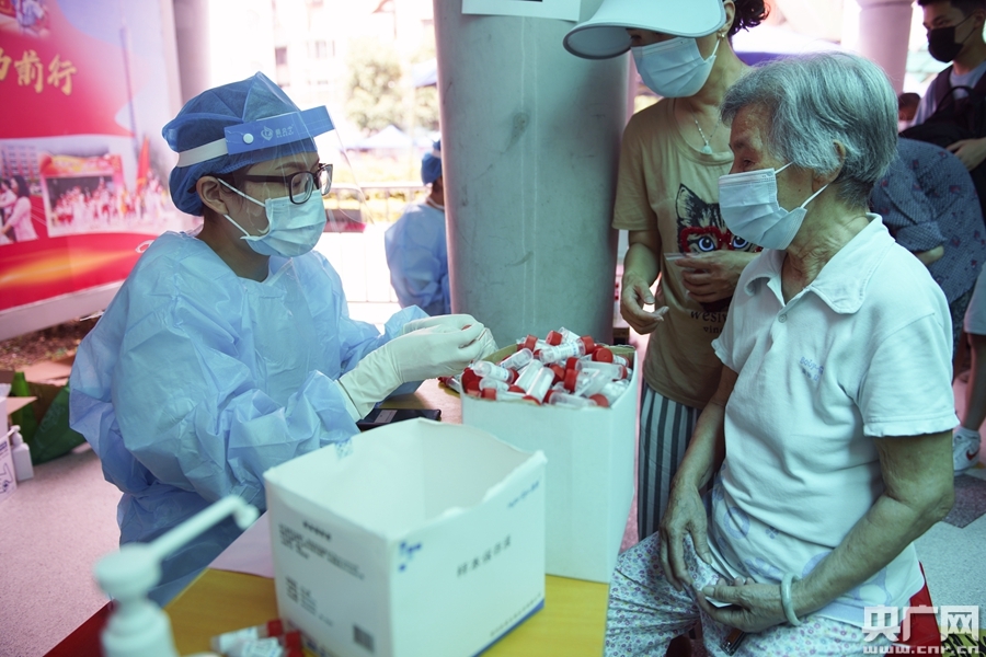 醫(yī)護(hù)人員正在對市民進(jìn)行核酸采樣。(央廣網(wǎng)記者 官文清攝)