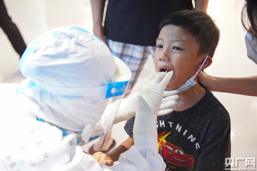 醫(yī)護(hù)人員正在對小朋友進(jìn)行核酸采樣。(央廣網(wǎng)記者 官文清攝)