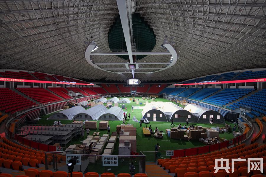 首個“獵鷹號”氣膜方艙實驗室在廣州體育館建成并投入使用。(央廣網記者 官文清攝)