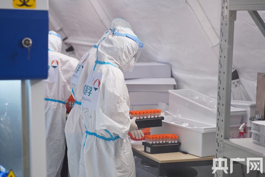 每個“獵鷹號”氣膜方艙實驗室日檢測產能可以達到3萬管。(央廣網記者 官文清攝)