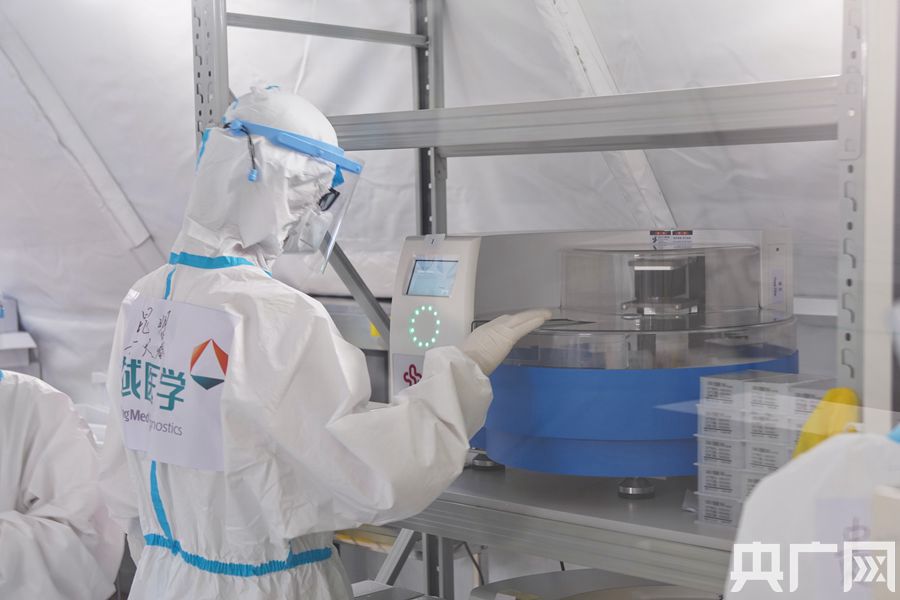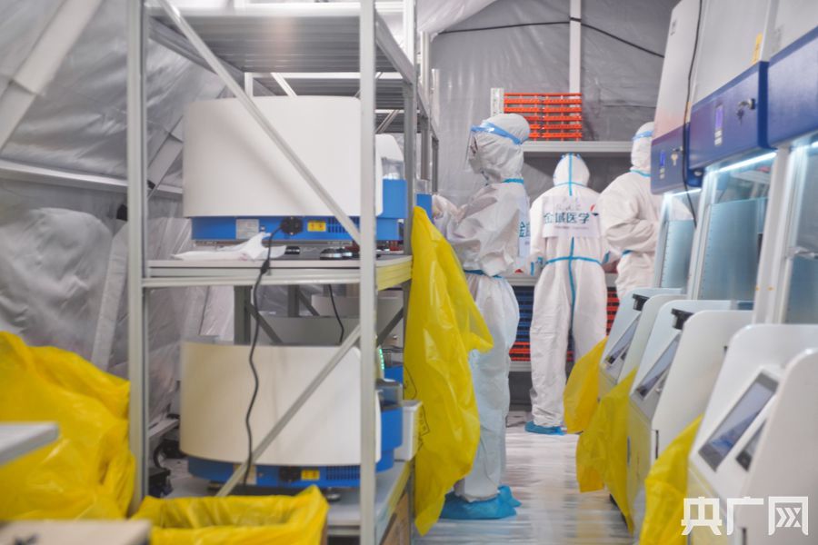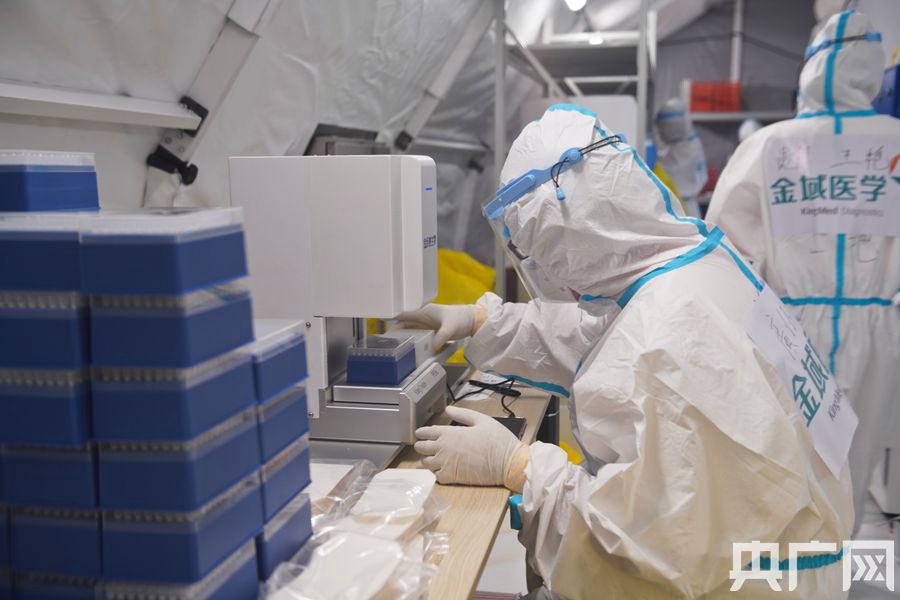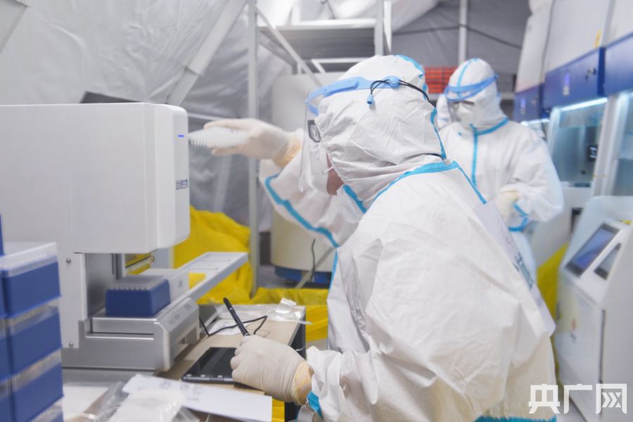 醫(yī)護人員正在檢測樣品。(央廣網記者 官文清攝)