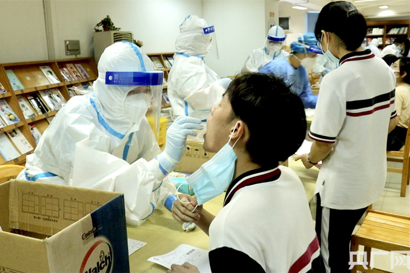王敏芳為兒子進(jìn)行核酸采樣。(央廣網(wǎng) 黃璐璐攝)