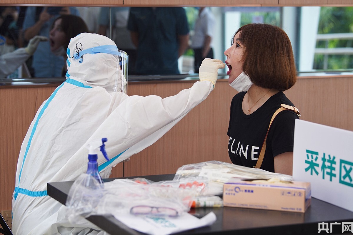 旅客在進行核酸采樣。(央廣網(wǎng)記者 官文清 攝)