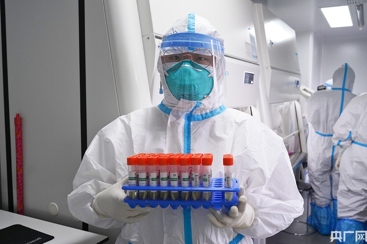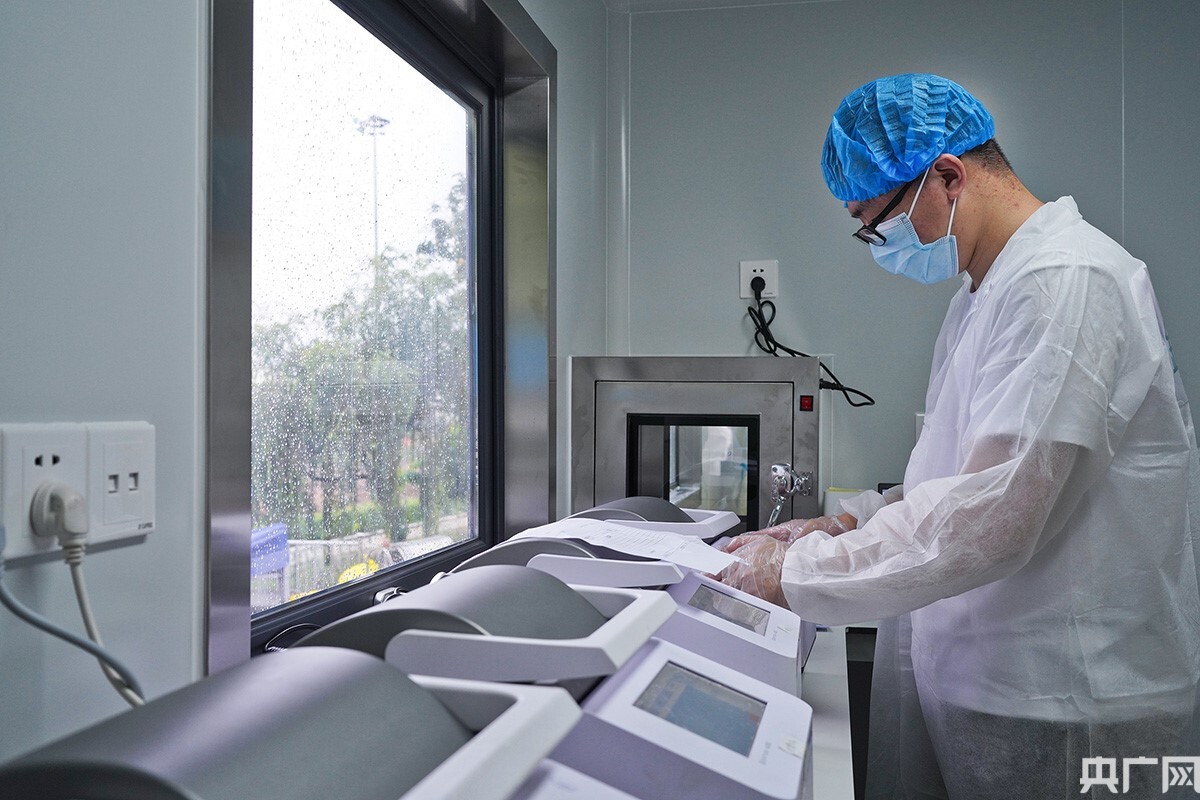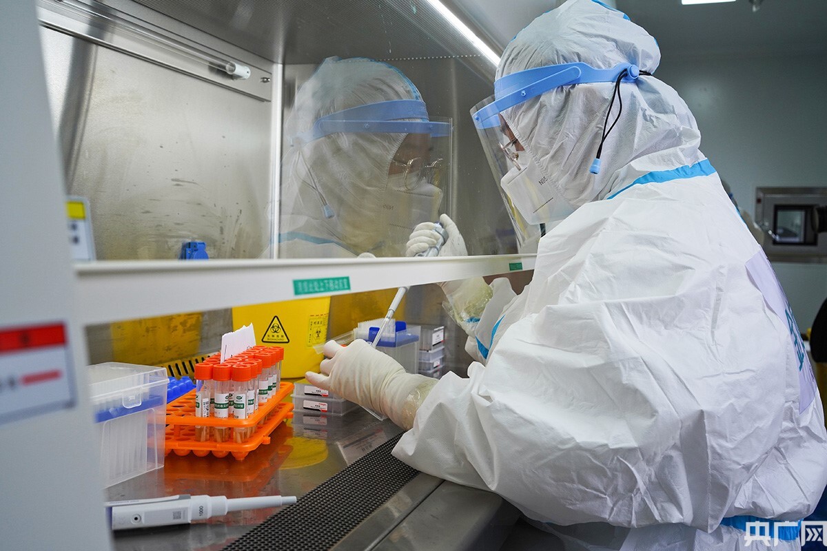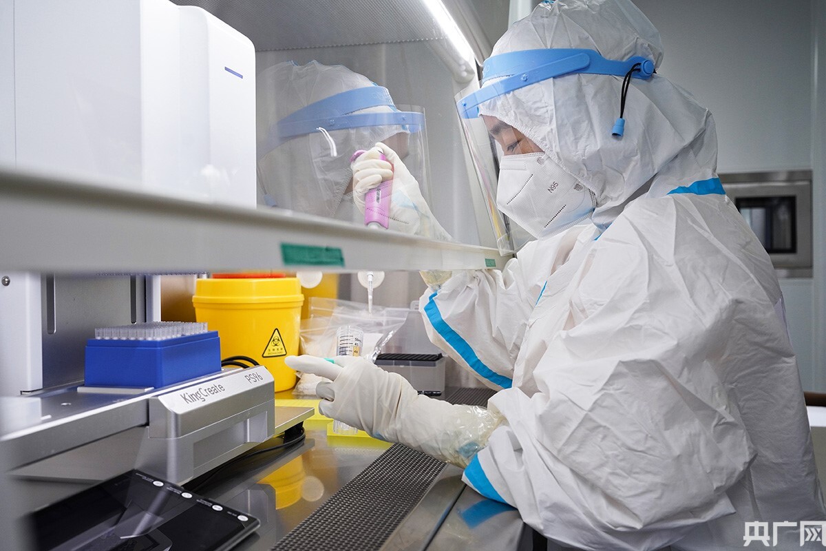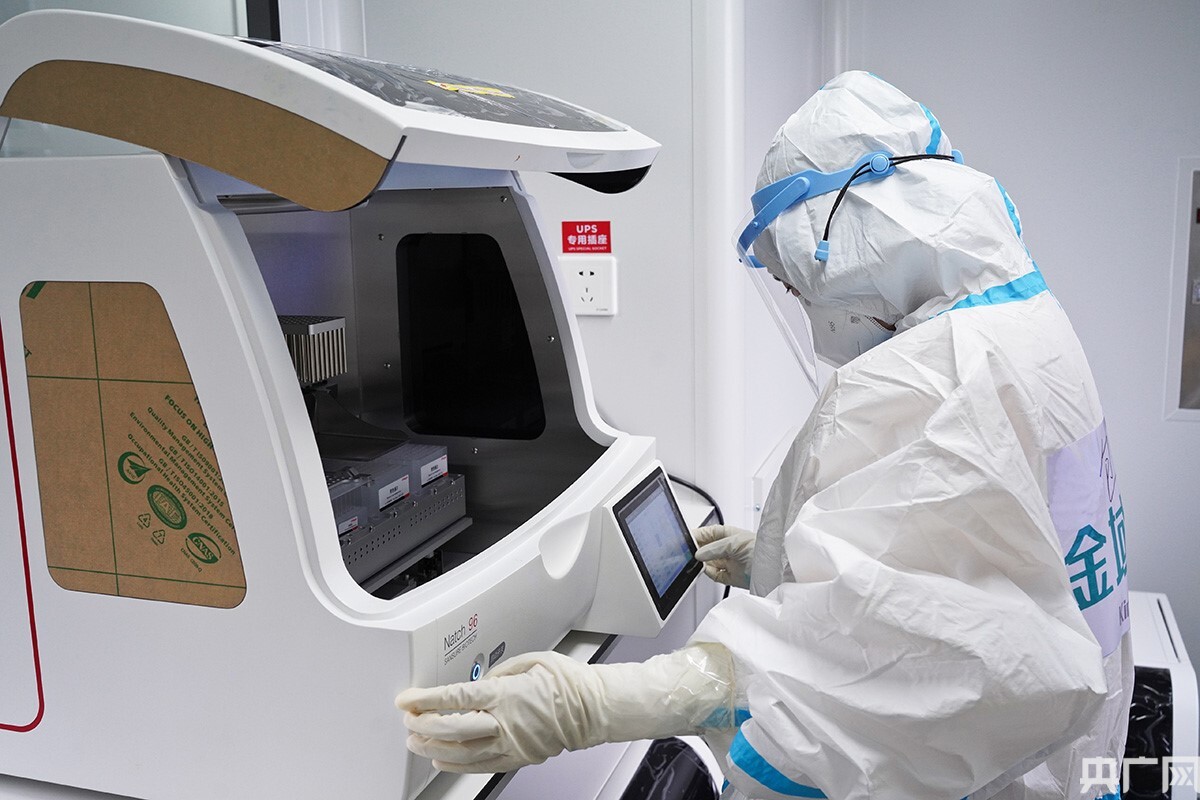 工作人員收到采集點運送的核酸樣本后將進行提取分離等操作。(央廣網(wǎng)記者 官文清 攝)
