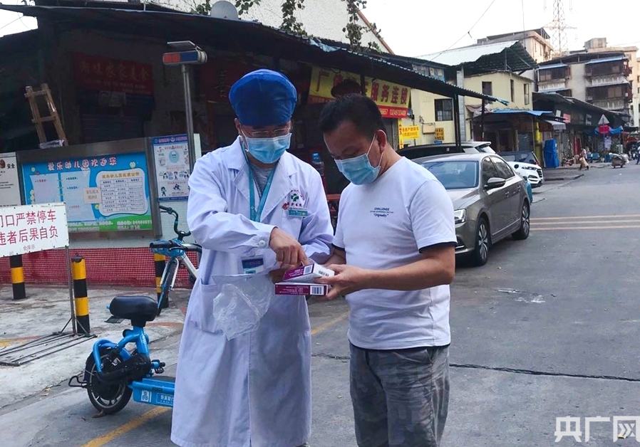 醫(yī)生甘火榮向謝先生囑咐藥物使用注意事項(xiàng)(央廣網(wǎng)發(fā) 通訊員供圖)