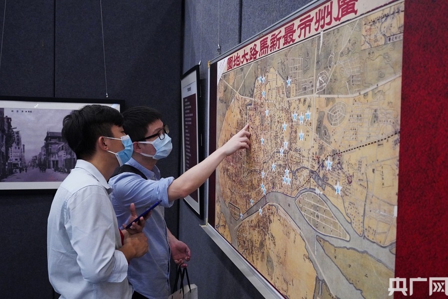 市民在觀看廣州市舊地圖。(央廣網(wǎng)記者 官文清 攝)