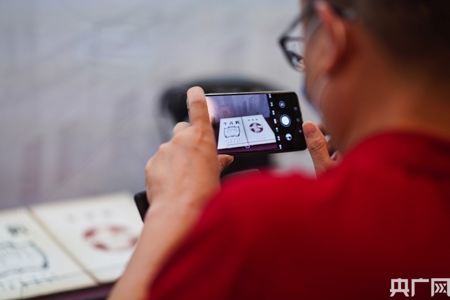 市民在拍攝展出的《新青年》雜志。(央廣網(wǎng)記者 官文清 攝)