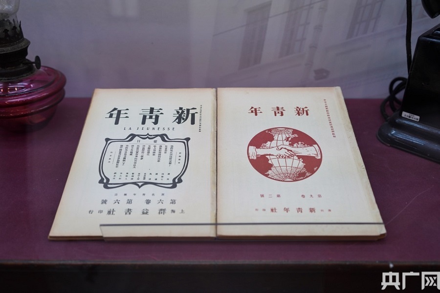 展覽現(xiàn)場(chǎng)展出的《新青年》雜志。(央廣網(wǎng)記者 官文清 攝)