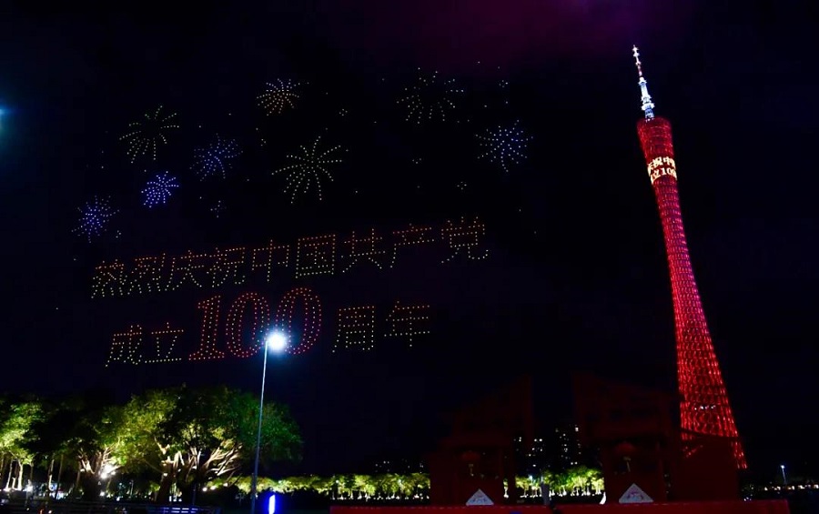 慶祝建黨100周年!廣州1520架無人機(jī)震撼夜空