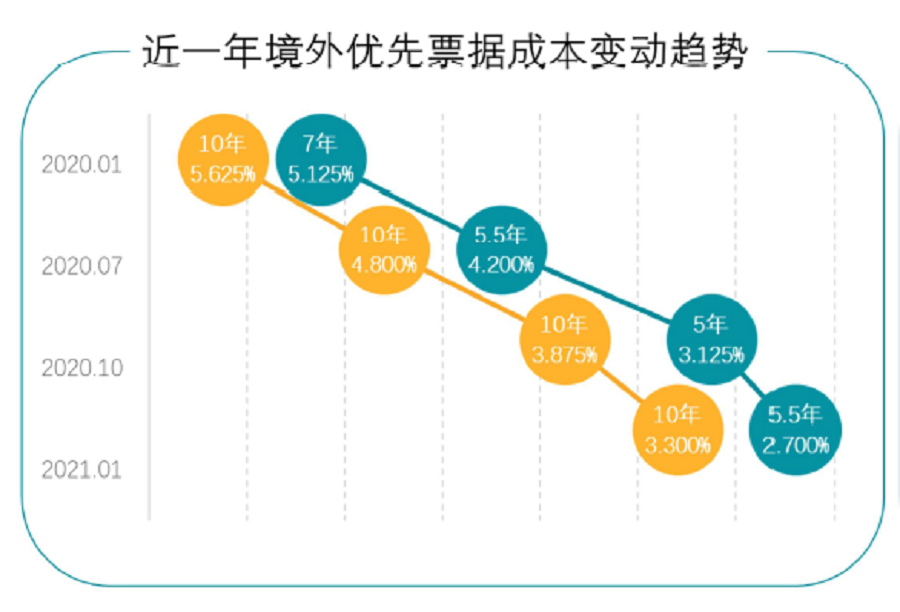報告期末,碧桂園的平均融資成本為5.56%,較2019年底下降78個基點(diǎn)。2021年1月發(fā)行的5億美元5.5年期票據(jù)和7億美元10年期票據(jù)的利率更是分別為2.7%、3.3%,創(chuàng)民營房企發(fā)債融資成本之新低。在行業(yè)整體融資趨緊的背景下,碧桂園以超低成本發(fā)債融資,充分顯示集團(tuán)穩(wěn)健的財務(wù)盤面在資本市場上擁有的競爭實(shí)力。
