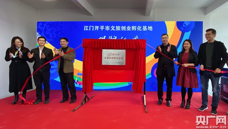 江門(mén)開(kāi)平市文旅創(chuàng)業(yè)孵化基地揭牌。(央廣網(wǎng)發(fā) 龐曉露攝)