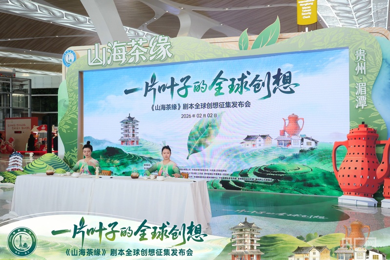 央廣網(wǎng)廣州2月2日消息(記者張順鵬)茶香千里潤(rùn)山海,協(xié)作共聯(lián)東西部。2月2日上午,廣州白云國(guó)際機(jī)場(chǎng)T3航站樓值機(jī)大廳內(nèi),一縷清越的古琴聲穿透人潮,來(lái)自貴州遵義湄潭的茶藝師身著素雅茶服,提壺注水間茶香四溢,身著民族服飾的舞者踏著節(jié)拍穿梭,將“谷雨邀請(qǐng)函”遞到往來(lái)旅客手中。這場(chǎng)融合了粵黔風(fēng)情的快閃表演,拉開(kāi)了《山海茶緣》劇本全球創(chuàng)想征集發(fā)布會(huì)的帷幕。