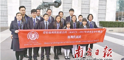 參與蒙特梭利模擬聯(lián)合國2017年世界青少年峰會的深圳代表團(tuán)。受訪者供圖