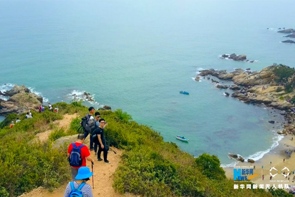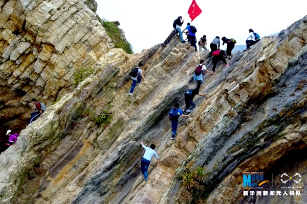 每逢周末及節(jié)假日,驢友們就會組團(tuán)相約于這條實際行走路程約八公里的穿越線路上,此時此刻,東西涌海岸線則變成了驢友徒步的最佳圣地。新華網(wǎng)發(fā)(陳楷攝)